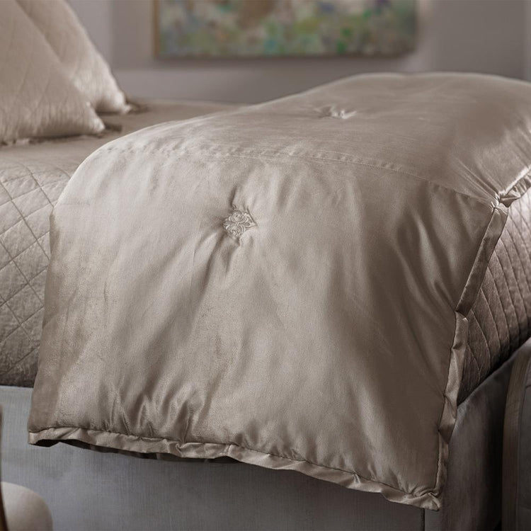 Sophisticated and elegant. Our Chloe Fawn Gathered 3-Panel Bed Skirt drapes beautifully and is adjustable. Our Bed skirts help keep dust from accumulating under your bed and conceal stored items.